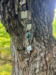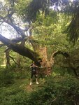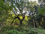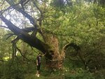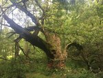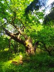 Я человек серьезный - вижу точку на карте, не вижу препятствий. Если вы там не живете идти прийдется пешком. Здаровеееный дуб, расколотый пополам внутри нет сердцевины где то метр в диаметре , но живой. Вокруг кстати тоже дремучий не лес. Сам дуб облюбовали православные вандалы и понатыкали икон, я их на всякий случай не осуждаю.