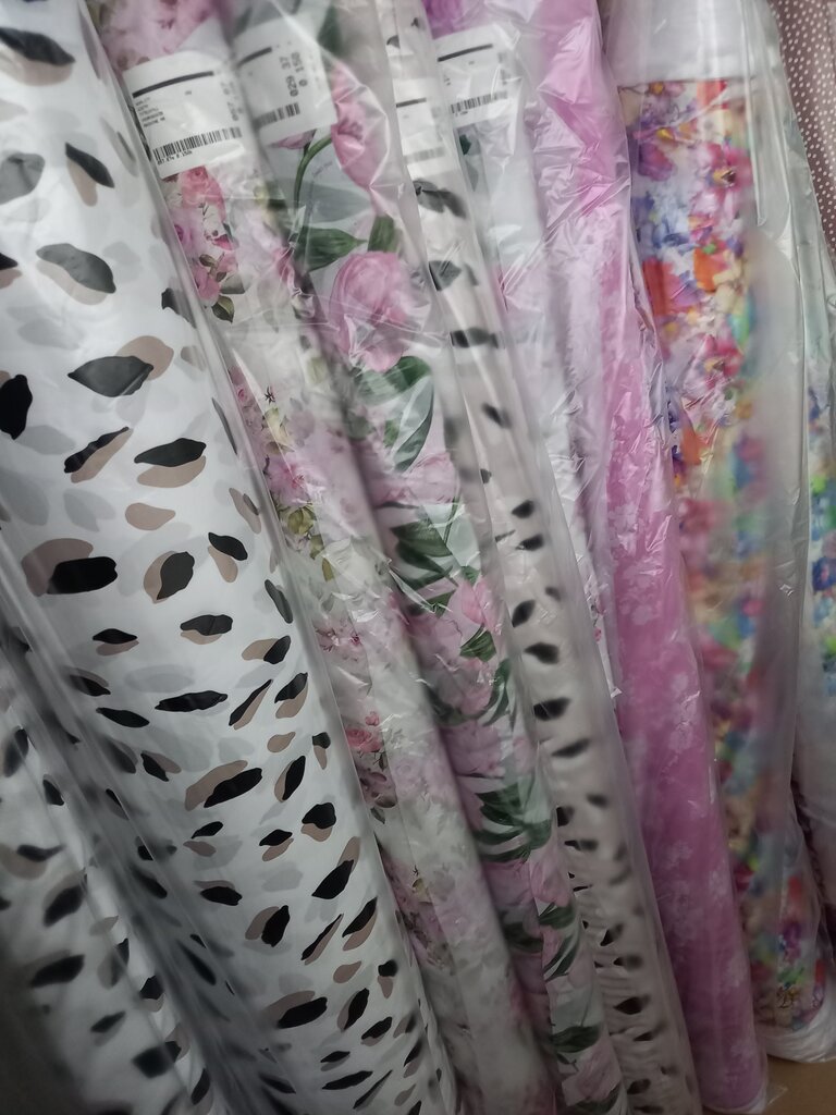 Ткани для одежды. Продажи оптом и мелким оптом от одного рулона. Также производится сублимационная печать на ткань. Выбор наносимого рисунка, можно свой дизайн, есть хорошие дизайнеры. Печатают на своей ткани и на ткани клиента, что очень удобно. Качество печати очень хорошее, но брак печати бывает