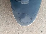 Посоветовали мастера... У кроссовок ecco протерлась ткань сверху на носке. Попросил сделать закладки сверху из кожи. Думал, что настоящему мастеру, да которого ещё и советуют, не нужно объяснять что нужно сделать красиво и аккуратно. А оказывается надо было. Нашили-наклеили какие-то мелкие кусочки кожи почти под размер потёртости. Неровный шов, ужас. Надеялся на мастера, кроссовки, можно сказать, новые. Вот, понадеялся. Мне бы стыдно было отдавать такую работу. А мастеру норм.