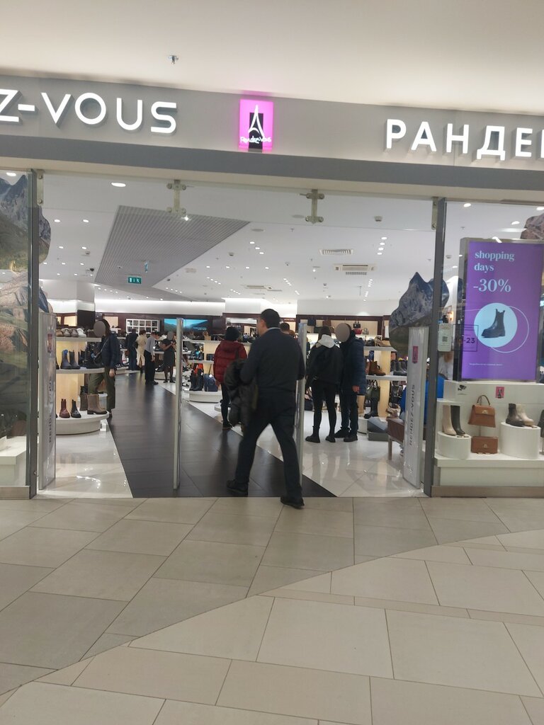 Очень хороший магазин. Большой выбор обуви различных брендов, аксессуаров, трикотажа. Хорошая система скидок! Замечательные консультанты - профессионалы своего дела, приветливые, тактичные, грамотно помогают определиться с выбором покупки. Довольно часто делаю покупки в сети Rendezvous и этот магазин один из лучших!