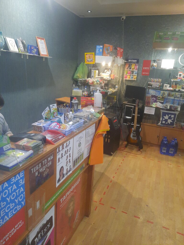 Хороший магазин, по ремонту электрооборудования смартфонов, планшетов, телефонов, телевизоров компьютеров и прочей бытовой электроники, так же есть множество услуг, копирование и печать документов, фотографий, продажа товаров домашнего быта, продажа электроники и аксессуаров, печать и принт на вещах и кружках, разные авто аксессуары, помощь и консультация в программных обеспениях, удобный и хороший магазин