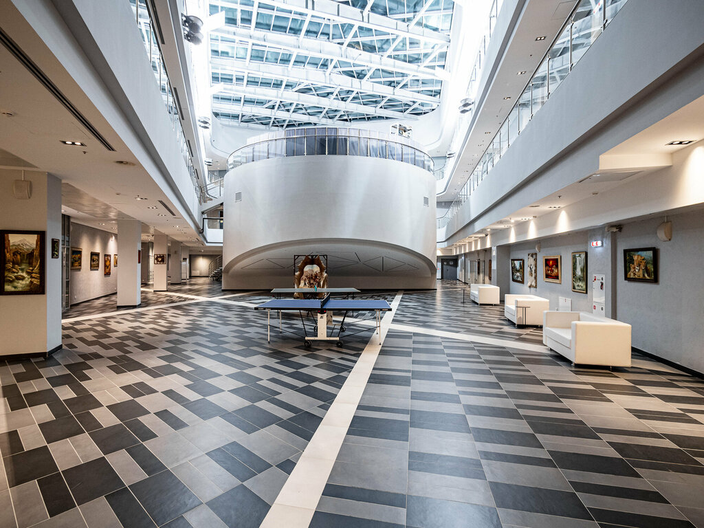 Офисный и лабораторный центр для различных компаний: Газпромнефть, Сколтех, Город, Stentex, Россети, и др. Внутри в аттриуме очень просторно: директор Ренова Лаб разместил картинную галерею на первом и цокольном этажах, на первом этаже в центре занимают помещения художники, в цоколе стоит рояль, прямо около виртуального глобуса, иногда кто-то играет концерн, немного в стороне есть столы для пинпонга, на возвышении есть кафе, в общем тихое спокойное место с безлимитным вай фай....