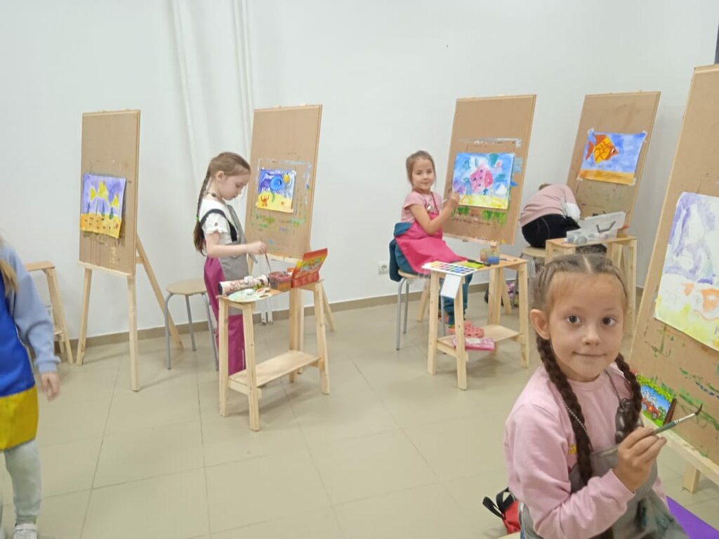 После первого занятия ребёнок принёс рисунок. Я даже не ожидал, что она так сможет нарисовать. Дети в данной студии учатся сочетать, смешивать цвета. Рисовать мазками. Выполнять разные композиции. Удобное расположение студии
