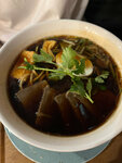Плюсы: Девочки хостес- норм. Еда плюс - вкусно. Дамплинги хороши. Супы приятные. Лимонады отличные. Минусы: Соусы на столе- заменить и помыть тару, пахнет откровенно плесенью. Ну реально фууу. Обслуживание- камон, грязную посуду нам убирали 15 минут, кофе и 2 десерта, которые просили при заказе принести последними, нам не несли, пока не напомнили о них вместе с просьбой рассчитать. Это еще 20 минут. При этом третий десерт, жареное мороженое даже не был передан в готовку. Вся эта песня далеко не с загруженным залом.