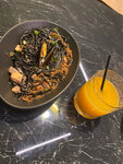 Еда вкусная. Интерьер стильный. Обслуживание супер всегда! Если Вам дорого/дешево ну не ходите, ресторан тут при чем?! В пасте с морепродуктами очень много креветок, а так же еще идет лосось и мидии👌🏻