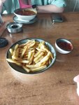 They serve quickly, and the potatoes and soup arrived in 10 minutes. At above-average prices. The menu is electronic. The atmosphere is filled with music and fans
