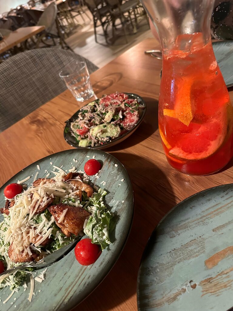 We were at a restaurant with my daughter today. The restaurant was almost full when we arrived and we thought that this was an indication that this was a good place. In this restaurant, in comparison with other places on Kvariati beach, we did not like almost anything. When we arrived, no one greeted us or brought the menu. Then we noticed that the menu needed to be scanned using a QR code, we had to spend our own Internet via roaming for this, since there were no waiters to find out how to connect to WiFi. Then the prices were unpleasantly surprised. Aperol spritz 200 ml costs 45 GEL😳 The food is also unreasonably expensive. The Caprese salad was tasteless, the hot chicken salad was too greasy (all in oil) and heavy (cost 28 GEL). I liked only French fries from the food. The waitress was unfriendly and refused to bring the child room temperature water (she brought ice water). A glass of Tsinandali wine was struck for 13 lari instead of 12 and forgot to bring it, but did not forget to add it to the bill. Conclusion: the place is uncomfortable, with poor service, tasteless food and unreasonably expensive. 114 GEL was paid for 2 salads, French fries, water and one 200ml Aperol spritz. This is an order of magnitude or two higher than the neighboring restaurants. I regret that I spent the evening in this place, I do not recommend it to anyone.