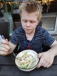 Посетили данное кафе, заняли столик в помещении,не душно, немного шумно, официанты молодцы, но кухня оставляет желать лучшего. Заказали том ям - не вкусно,ещё и рис нужно отдельно покупать, фобо - пересолено, пицца цезарь - из начинки в основном одна капуста, заявленной индейки и пармезана не заметили, да ещё и вся в масле почему-то. Больше в это кафе не пойдем.