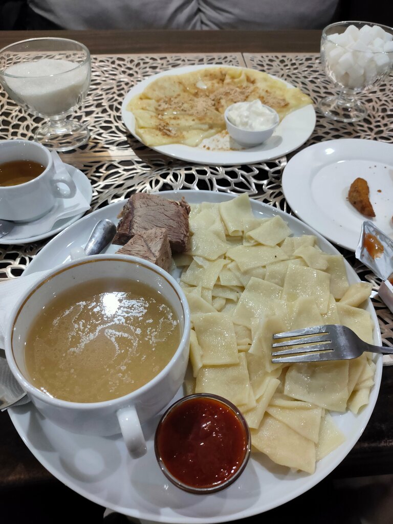Отличный ресторан! Большие порции, очень вкусно. Странно, что в такое хорошее место ходит так мало людей. Пришли с семьёй в ресторан, а кругом никого, только официант. Всем советую!
