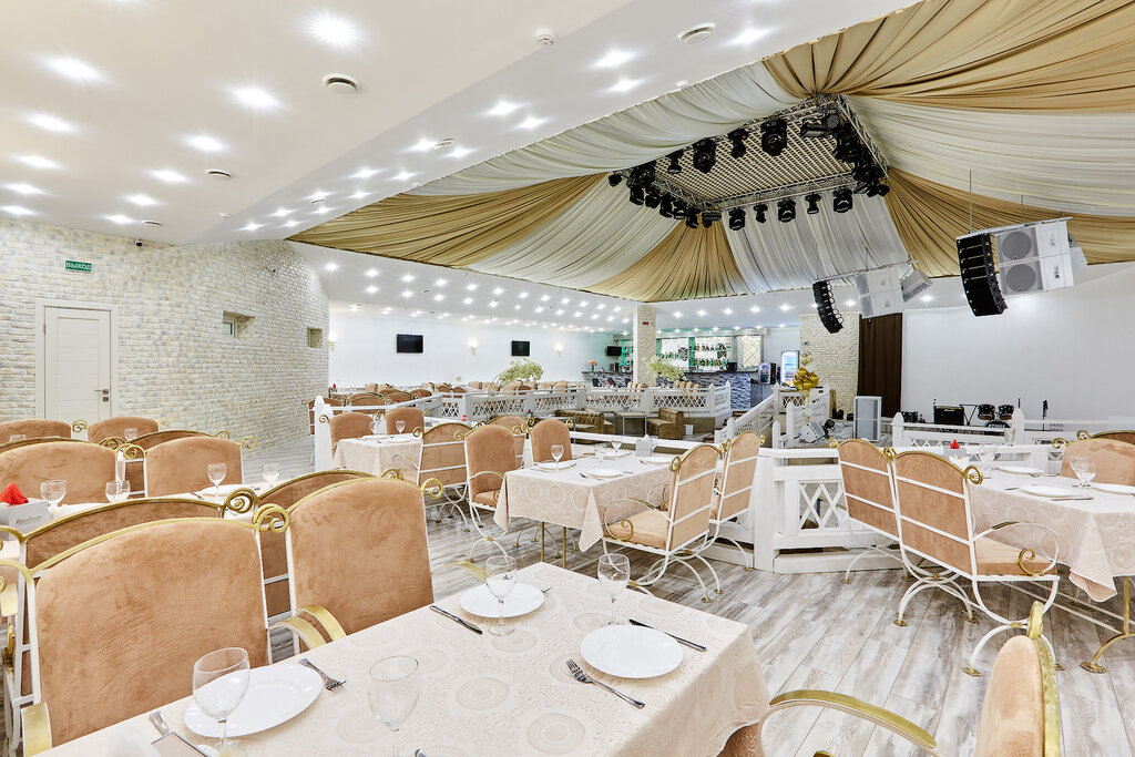 Встречал в этом заведении 2021 год. Персонал приветливый. Кухня хороша, особенно удался шашлык. Стулья очень не удобные, с завитушками на спинках, и если хочется выйти из-за стола, то приходится не только отодвигать стул, но и раздвигать соседние, что бы пролезть между ними. Апофеозом удовольствия от нахождения в этом заведении стало использование песен с нецензурными текстами, и это при наличии в зале детей. Пришлось срочно покидать заведение, праздник был испорчен.