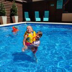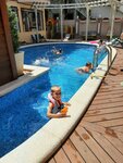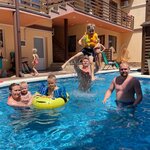 Отдыхали здесь семьей с 10го по 24 августа 2023 года. Отличное место для отдыха с маленькими детьми, здесь не бывает шумных гулянок, попоек, все в рамках разумного, не задыхаешься от сигаретного дыма, когда ни в какое время суток нельзя открыть окно. До моря 200 метров, после моря в бассейн, он с подогревом, вода была 30 градусов. Приличная еда при отеле за разумные деньги, не ресторан конечно, но все свеже приготовленное. Предлагают завтрак и обед, ужина жаль нет. Номера отеля чистые, девочки постоянно меняют полотенца, проводят влажную уборку. Весь персонал очень доброжелательный и приветливый. Кроме бассейна есть небольшая детская площадка, детская комната, по выходным приезжают анниматоры. Дети и взрослые прекрасно провели время во время такой импровизированной детской вечеринки. Рядом с отелем магазин магнит, правда в нем много чего нет или разбирают мгновенно, напротив магнита одна из дешевых аптек, там чучела животных и аквариумы на входе. Есть небольшой рынок в основном с фруктами и сладостями. Всё это в шаговой доступности от отеля. На следующий год приедем сюда снова, потому что и море было более-менее чистым, не привезли с моря ни энтеровируса, ни ротовируса, как в прошлом году из Геленджика. Хочу сказать спасибо всем, кто сделал наш отдых приятным!!! Процветания вашему отелю и отличных гостей!!!