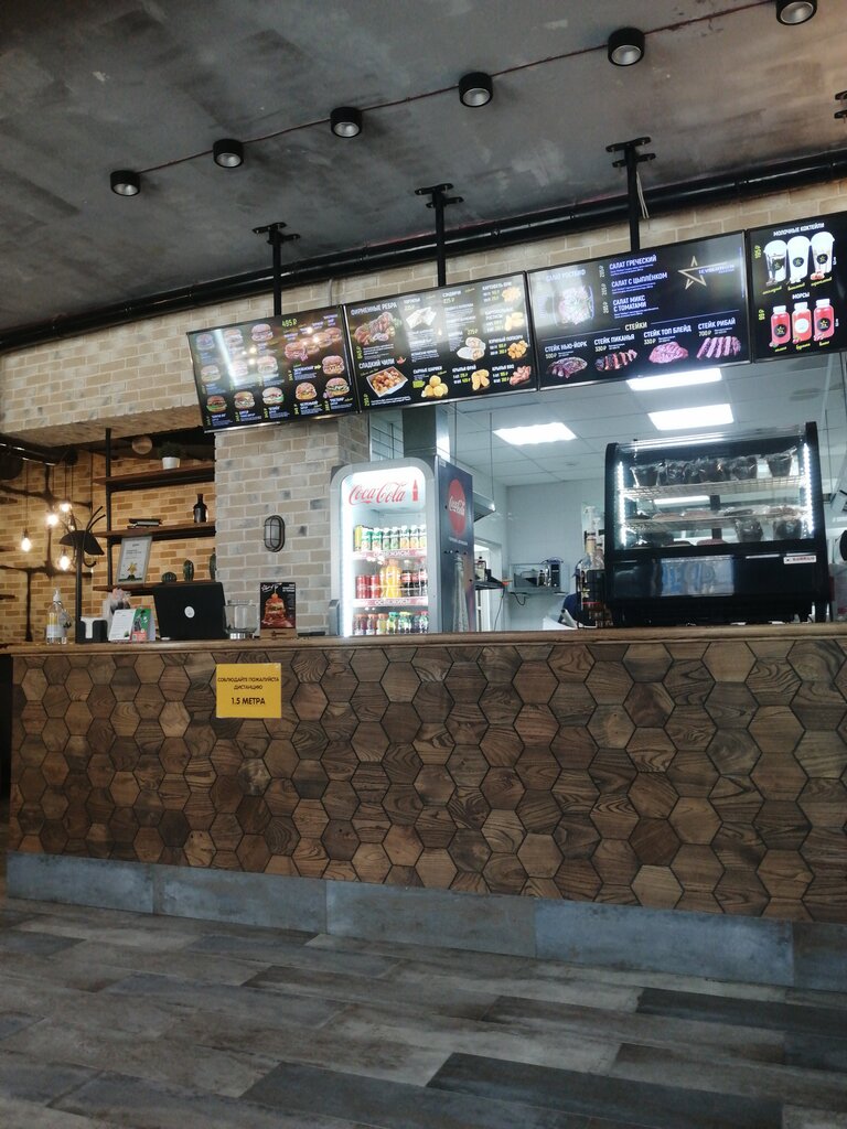 Начну с главного - бургеров. Кто то писал, что они тут крутые. Неа. Котлеты сухие, масло долго не меняли. Сами булки и соус, вполне себе, но ценник и качество не соответствуют друг другу. Есть куда более вкусные крафтовые бургеры. Картофель фри достойный. Скорость готовки высокая,, но вот сервис прихрамывает. Кофе после приготовления несли минут 10. По моим подозрения, что девушка за стойкой ковырялась в телефоне. Доставка есть, но сайта нет.