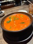 Могу без зазрения совести сказать, что не пожалел, когда посетил данное заведение. Внутри красиво и уютно. Музыка играет ненавязчиво, пространства много и столики не стоят очень близко друг друг, поэтому "толкаться плечами" с соседями не обходимосьи не будет. Что по меню. Был пару раз, и точно могу отметить местные стейки, а ещё борщ. Все понравилось, в особенности стейки(брал оба раза, прожарка rare) Помимо этого, пробовал еще том ям, который тоже не плох, но остроты не хватает, причем даже мне - человеку который, в принципе, не ест острое. Еще могу отметить, что порции большие и подача хорошая. Официанты вежливые и опрятные. По напиткам, пока, сказать не могу, ибо оба раза пил чай, ну а он... Ну, чай и чай. В общем, хорошее заведение и не поставил пять, тольно потому, что нет чего-то, что выделяет на фоне остальных "хороших". Как-то так) Всем приятного аппетита!