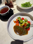 Пробовали бизнес-ланч обычный и премиум. Ребра понравились , да м все остальное тоже. Салат только скучный ( на фото). Красивая подача, но сам невзрачный. А в остальном все вкусно и официантка была вежливая и улыбчивая.