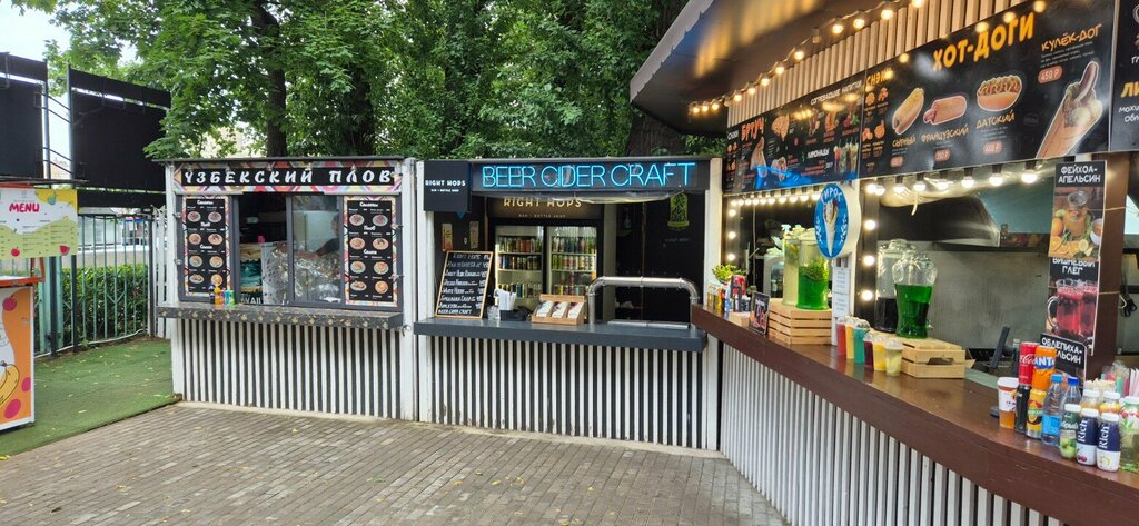 Отличная локация. Единственное место в парке с крафтовыми напитками. Рядом куча разных павильонов с едой Ребята в магазине добрые, но напористые, знают ассортимент, но могут спорить по поводу напитков)) Ассортимент небольшой, 2 холодильника с фасовкой и 5 кранов.