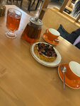 Зашли по дороге пока гуляли, зашли, на нас от официантов ноль внимания, решили сами со всем разобраться, ну вдруг формат заведения не тот. Сели официантка подходит и без всяких вступлений говорит «если что у нас оплата на кассе», ладно, ок. Заказали чай и какао, ко вкусу нет вопросов, но половина объема стаканчика с какао занимает пена, ещё и забыли закинуть сверху маршмеллоу, ложка была грязная, с остатками какой-то еды, чайник весьма странной конструкции с отваливающейся ручкой, в общем есть над чем работать