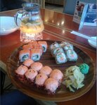Очень долго приходится ждать официантов, обслуживание на очень низком уровне, некрасивое оформление зала, роллы ужасно приготовлены, сырые, есть невозможно. Цены не соответствуют качеству абсолютно