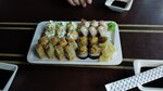 Таких невкусных роллов я не ела никогда. Как можно испортить классические роллы Филадельфия не понимаю. Рыба, видимо, была замороженная. Творожный сыр совсем не вкусный. Другие обжаренные роллы были ещё хуже, какой-то гадкий соус сверху и лучок😁 Муж взял просто вареный рис и сказал, что дома сам бы лучше приготовил. Стол протирали уже при нас, хотя народу было совсем мало. Детский стульчик весь изляпаный. Салфеток на столе не было и грязную посуду не убирали. Впечатление резко негативное.