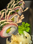 Заказала первый раз на самовывоз ролл с тунцом. Рис сухой, не хватает больше соуса. Неплохо. Имбирь островат. Тунец сильно переживается. Авокадо тоже не чувствуется. Персонал не очень приветливый.