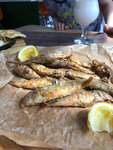 Неплохое место. Особенно в данном районе. Тут ничего более приличного нет вообще. Очень шустрая и компетентная официантка. Отлично знает меню и поможет с выбором, причем сначала выяснит ваши цели и предпочтения. Нам принесли прекрасные напитки, жареную барабулю и сыр запеченный с помидорами. Все прекрасного качества и очень вкусно. Некоторые рыбки слегка горчили, но не вижу в этом ничего критичного. Из минусов лично для меня: нет детского меню (и банальной котлетки или макарошек), туалет - чистый, приличны, но с жутким запахом, и интерьерчик так себе. Но на супер звание кафе не претендует, потому вполне норм. Цены для такого уровня заведения высоковаты, но они обусловлены полным отсутствием конкуренции. И главный бонус: к оплате принимают карты.