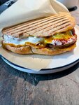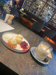 Кафе находится в Еврейском музее и Центре толерантности, при этом для посещения кафе билет в музей покупать не нужно. Великолепное кафе — вкусная еда, дружелюбная атмосфера, средние цены. Моя коллега заказала: Салат с хрустящими баклажанами (660 ₽). Питу с фалафелем (560 ₽). Американо (250 ₽). Казалось бы, что салата достаточно, и пита была бы уже лишней, но баклажаны оказались, на удивление, очень лёгкими и свежими, несмотря на жарку, поэтому пита с фалафелем пришлась как раз кстати. 😋 Себе я заказала: Сэндвич «Сабих» (580 ₽). Яблочный тарт (430 ₽). Капучино 360 мл (390 ₽). Всё было очень вкусно — горячий и аппетитный сэндвич, ароматный тарт и вкусный кофе. ☕️🤤 Обязательно зайду в это кафе ещё раз и посоветую его своим знакомым!
