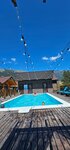 Отличная гостиница на берегу реки. Всё новое, современное, бассейн с тёплой водой, отдельная мангальная зона (стол, вода, несколько мангалов), баня на дровах. Продумано всё до мелочей. Хорошая посуда. Завтраки дороговато, конечно, но 3 вкусных блюда с красивой подачей.