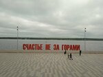 Место для прогулки и отдыха хорошее, по немногу набережную обустраивают и продлевают, чисто, есть лавочки напротив надписи "Счастье не за горами", если пройти по набережной дальше в строну моста, есть спортивные площадки и места для отдыха.