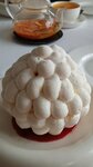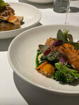 Отличный ресторан! Очень хорошее обслуживание, еда вкусная - всё понравилось, подача красивая. Заказывали: - Брускетта с копченым угрем, молодым сыром и огурцом (супер, очень вкусно! На фото половинка брускетты). - Салат с угрем, авокадо и свежими огурцами в имбирной сметане (решил продолжить с угрём - тоже отлично). - Утиная ножка Конфи с красной капустой и кремом из сельдерея. - Морские гребешки на огне. - Десерт: яблочный пирог в обожженной меренге. - Десерт: шоколадная девочка.
