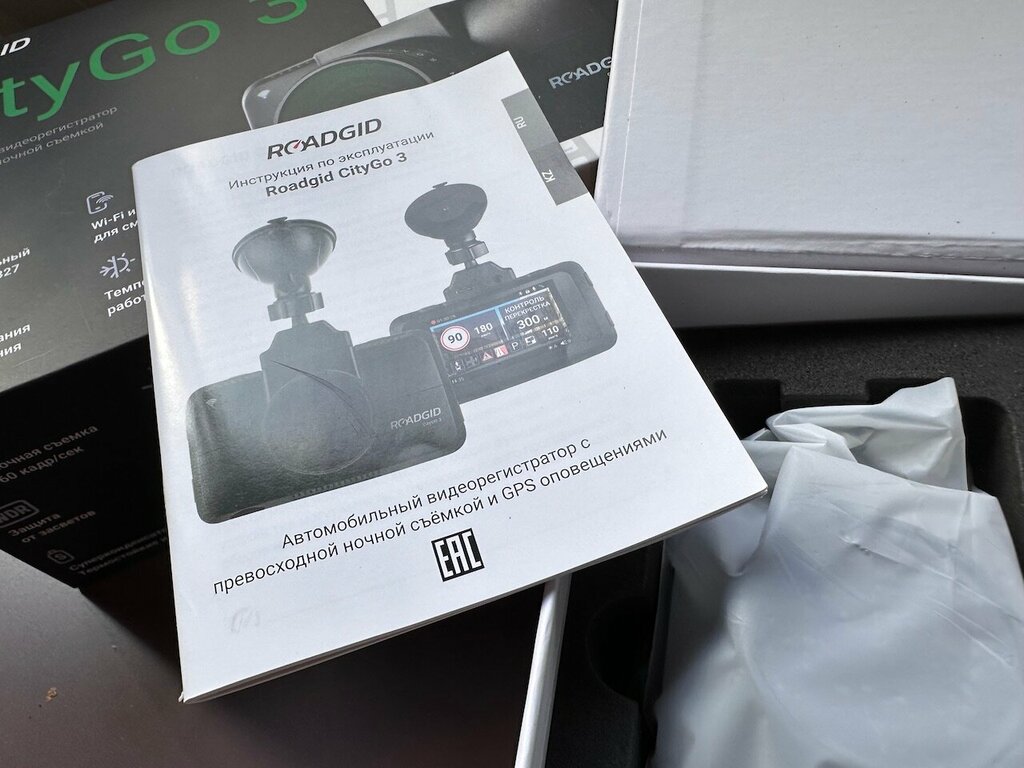 Комбо-устройство с GPS, WiFi и ну очень приличной видео-съемкой регистратора в темное время суток. Упаковано более чем солидно, любители дорогих мобильных устройств оценят сразу. Итак, что конкретно понравилось - вероятно все, так как задавшись этим вопросом я понял, что выделить что то из общего позитивного ощущения от девайса, сложно. Понятное дело, что производители таких устройств уже обожглись на недостатках предыдущих версий и работу над ошибками сделали, что, в принципе, и приводит процесс в целом к созданию практически идеального аппарата. Учтено все - от веса до размеров (если говорить о габаритах регистратора). Устройство легкое, тактильно приятное , что, впрочем, не столь важно, так как в большинстве случаев трогаем мы его только при установке устройства в салоне автомобиля (хотя, вероятно, есть водители, снимающие регистратор, уходя из машины). Укрепив регистратор на лобовом стекле и подведя к нему питание, включаем зажигание автомобиля (устройство запускается) и проводим первичную (а как правило, она же и постоянная) настройку устройства. Обновляем базу даных JPS точек через мобильное приложение на смартфоне (линк на скачивание приложения есть в инструкции к устройству в виде QR кода) и в принципе все. Умолчания установок универсальные, но, конечно, можно выставить некоторые параметры по желанию - разрешение видео, например. По умолчанию видео пишется в равных отрезках по времени (по несколько минут на фрагмент), которые на флэш-карточке в видео удобного списка с точным указанием времени и географической точки места съемки. Что касается второй и, безусловно, значительно чаще востребованной функции регистратора - оповещения о камерах контроля скорости, препятствиях и считывания дорожных знаков, то здесь претензий практически нет, за исключением периодических пропусков некоторых дорожных знаков, что , как выяснилось опытным путем, присходит по причине плохой различимости информации на них из-за встречного солнечного света или сильного загрязнения самих знаков или лобового стекла (но, еще раз отметим, что это весьма редкое явление и в обычных условиях все работает безукоризненно). Основное и всегда и постоянно используемое - это звуковые сигналы и отображение на дисплее устройства предупреждений о приближающихся комплексах контроля как скорости, так и стоп-линии и это работает на пять баллов по пятибальной шкале, так что киборг по имени CityGo-3 от RoadGid очень даже хорош! В общем-то и все наверное. Благодарим команду компании RoadGid за чудесное устройство, извбавляющее от штрафов.