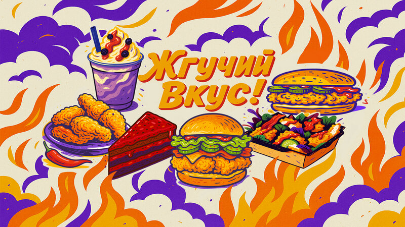 Пряный соус, маринованные огурчики, репчатый лук, салат айсберг, куриное филе (в фирменной панировке (7трав и 5 перцев)) и кетчуп, всё на булочке с кунжутом.