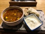 жареные во фритюре баклажаны, сыр сливочный, соус свит-чили