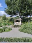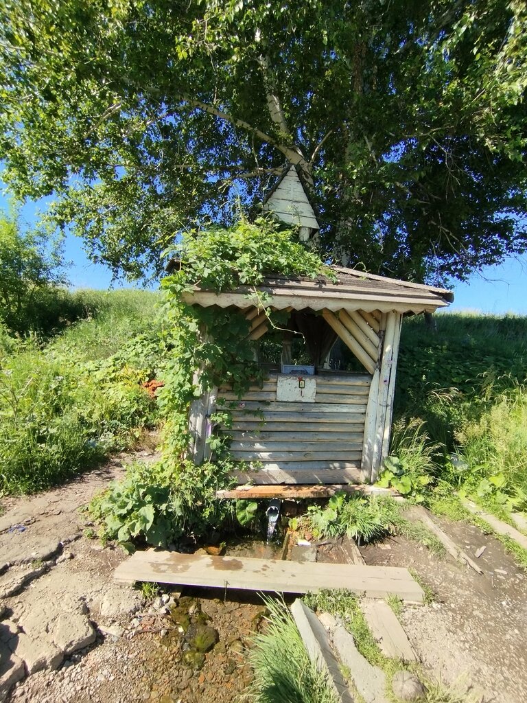 Отличная водица. Заметили в последний момент - чуть не проскочили. Хорошо что есть маленькая полоса для остановки. Вместились вместе с длинномером. Оказалось он часто тут набирает воду в дороге. Подход к источнику по мосткам. Сама вода течёт из трубы. Над источником есть небольшая беседка со скамейкой внутри и иконками.