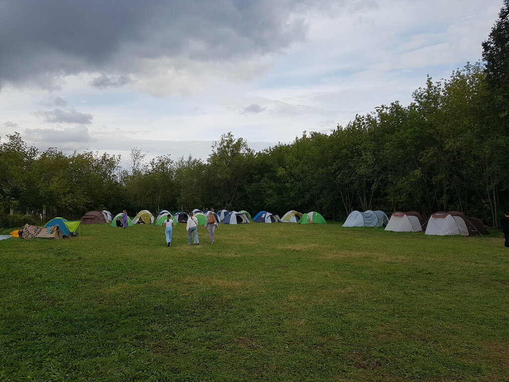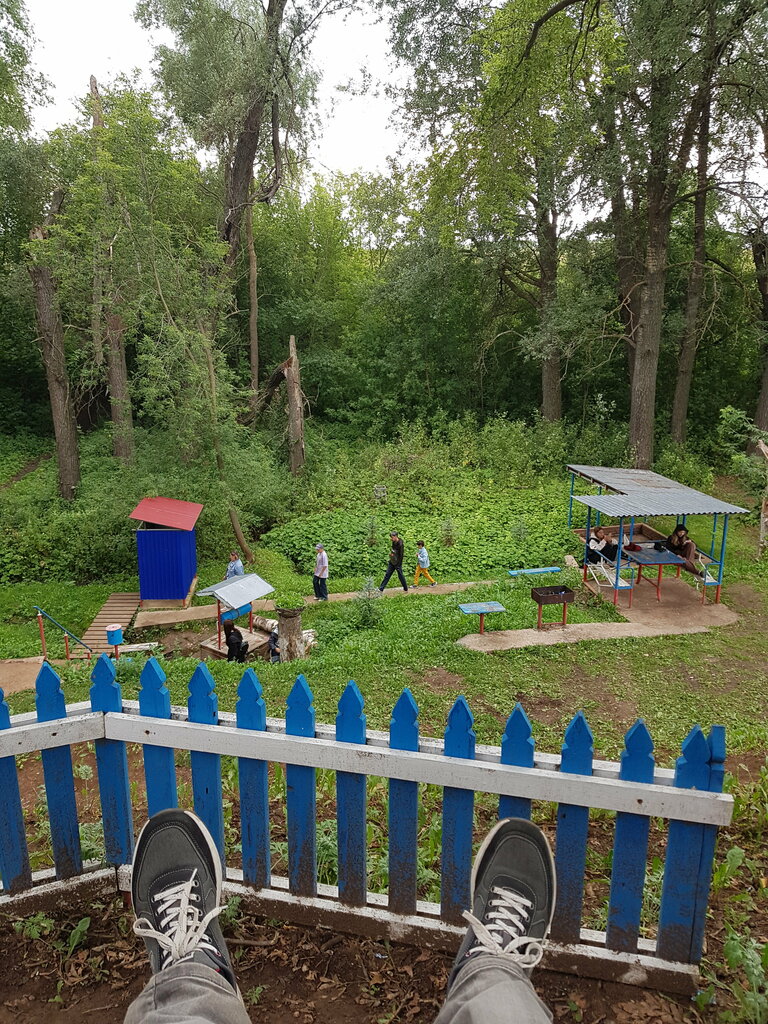 Родник запакован в колодец. Есть купель.Сверху место детского палаточного лагеря.