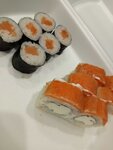 Заказывали на доставку несколько раз, всё понравилось. Вкусные роллы, не маленькие, доставка по времени, как и обещают операторы😉 на фото-сет Море рыбы, где все роллы с лососем♥️