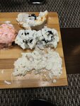 Роллы с доставки: набор "Октябрь". Дополнительно заказывали соевый, имбирь и васаби. Из всего самое качественное было - васаби. В чашечку с имбирем положили очень мало продукта, хотя видно, что роллов много заказано! Сами роллы отельное: там много роллов с рыбой сверху: типа филадельфии лайт - рыба отвратительная!!! Безвкусная, суховатая! В чем вы ее вымачиваете? Ужас! Рис тоже сухой, роллы распадаются! Двойка это ещё хорошая оценка. Совсем испортилось качество. Не советую!!!