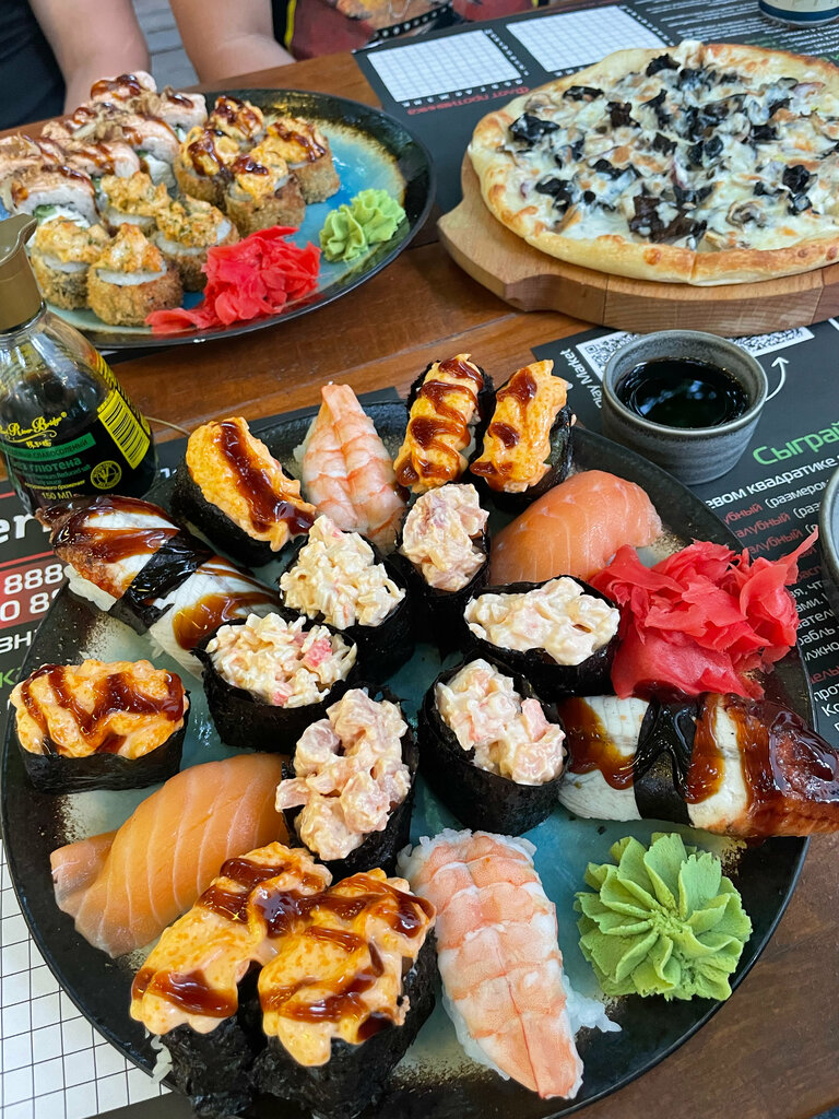Не очень понравилось место, выявили достаточно много минусов: -в заказ не положили палочки -состав сладких суш полностью не указан, написано "сладкая масса", а что входит эту сладкую массу? -блинчик сладких суш буд-то резина какая-то -доставка долгая 2 часа -пицца холодная приехала Но при этом сервис не из дешёвых, за данные деньги хотелось бы сервис получше