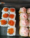 Почитала комменты, решила заказать роллы тут, тк компании, в которых я люблю заказывать уже были закрыты На вид и запах просто шикарно и это плюс, васаби ядерный, всё как я люблю, соевый соус тоже неплохо, но минус в этих роллах тем, что они разваливаются Я привыкла есть их палочками, но они в палках просто разваливаются, а в соусе они разваливаются прям конкретно, даже если осторожно брала ролл на руки, тк тут рис рассыпчатый, а не круглозёрный, из которого обычно делают роллы Дальше Доставка 350 рублей мне обошлась это еще один минус, тк в основном доставка бесплатная Я конечно не бедняк, но дороговато как-то Еще один минус тем, что из вкус шипко не чувствуется, собственно поэтому тут две звезды, а не пять или четыре -_- Потому что за 2000 рублей такое, ну это как то фигово.