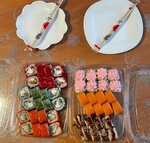 Заказали роллы папе на день рождения, вкусные роллы, а ещё второй сет в подарок, съели с аппетитом.