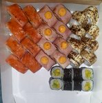 Плюсы: 1. Приложение удобное, все понятно. 2. Приемлемые цены и большой выбор. Начиная от постного меню заканчивая салатами и поке 3. Доставка быстрая, конечно в зависимости от пробок и дня недели. 4. Если курьер опаздывает, то вам обязательно дадут подарок. У меня курьер задерживался на минут 15-20 и мне положили морс) 5. Суши ооочень вкусные 6. Положили много салфеток, соевых соусов, имбиря и васаби 7. Упаковано все красиво и аккуратно, даже стильно я бы сказала. В картонных каробочках и каробочках из фольги 8. В сушах очень много рыбы, творожного сыра и тд 9. Благодаря коробочкам из фольги суши остаются теплые, будто их пять минут назад приготовили 10. Десятый плюс в том, что я не нашла минусов, мне все понравилось