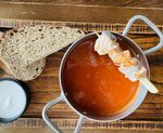 Стейк сёмги, цветная капуста, морковь, сельдерей, брокколи, том-ям паста, кокосовое молоко, соус биск