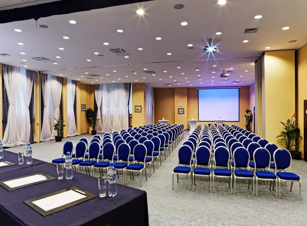 Комплекс состоит из четырех небольших залов каждый из которых одновременно может принимать гостей для конференций иди небольших банкетов,при желании превращается в один большой зал для Вашего торжества ,встречи иди конференции