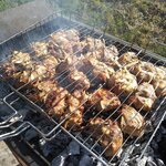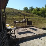 В принципе не плохо. Мы были большой компанией,посуды маловато,в беседку со всех номеров несли. Мангал под открытым небом, вроде не сильно холодно, но стоять жарить шашлык под дождём удовольствия мало.