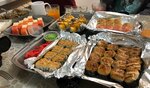 Калифорния запеченная (8 шт.), бекон спайси (8 шт.), запеченные классические под спайси соусом с мидиями (8 шт.), со свининой (8 шт.), запеченный классический с крабом под чесночным (8 шт.), соевый соус, имбирь, васаби