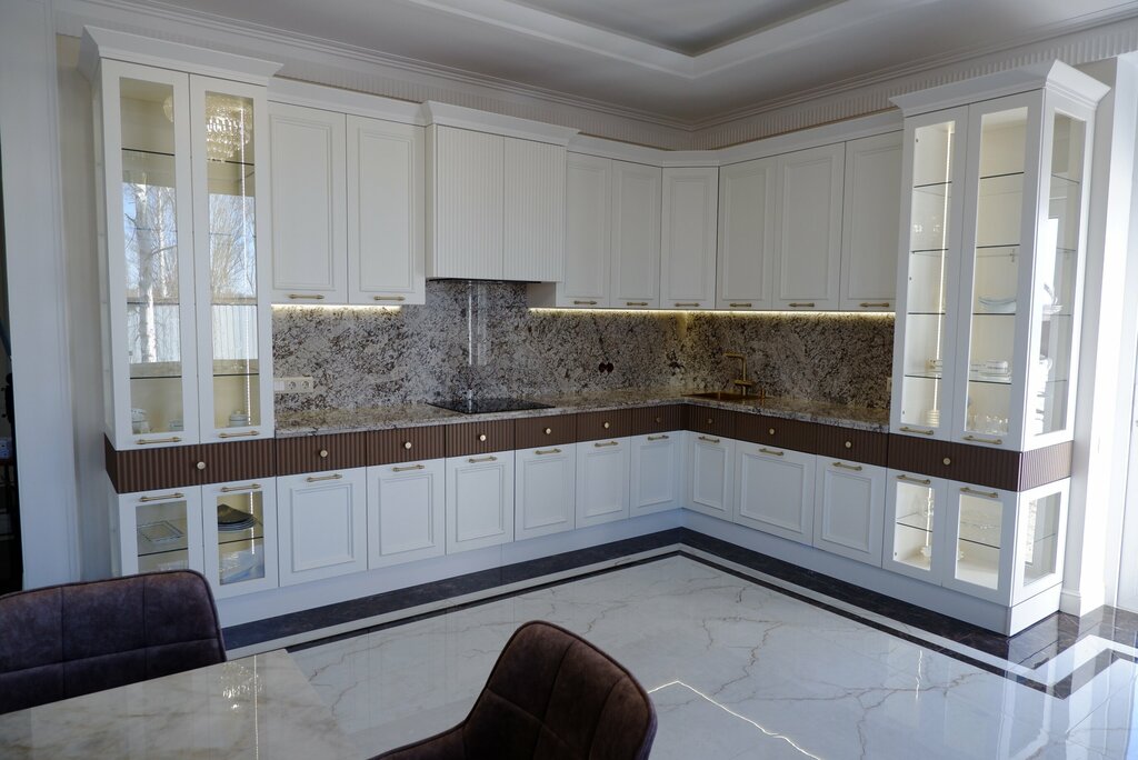 Просторная кухня в белом цвете расширяет пространство и делает ее лёгкой, а темные элементы подчёркивают и дополняют интерьер. Мы изготовим для вас кухню мечты. Оставляйте заявку, все остальное мы берем на себя.