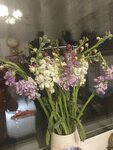 Гортензия - 3 шт Эустома - 5 шт Орхидея - 7 шт Салал Матиола - 5 шт Упаковка - крафт и лента шелк