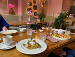 2 раза завтракали с друзьями, очень приятное кафе Сразу же подают графин воды со стаканами, вода на вкус показалось не очень приятной, но за такую фишечку определенно плюс ☺️ Завтраки готовили быстро, кофе вкусный, цены приятные) красота! Персонал очень приятный👍🏻