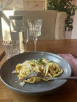 Кафе очень уютное, много цветов и приятная обстановка, еда свежая и вкусная. Особенно понравилась паста. Макароны сделаны лично поварами кафе. Приятно что весной были свежие овощи и ягода. Ну и конечно десерт. Очень понравилось пироженное" Картошка " . Улыбчивая официантка Дарья с утра подарила нам заряд бодрости и хорошего настроения!
