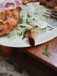 Добротный вкусный шашлык за свои деньги, время приготовления и подачи блюд на уровне. По две порции на каждого то, что надо. Остались очень довольны:)