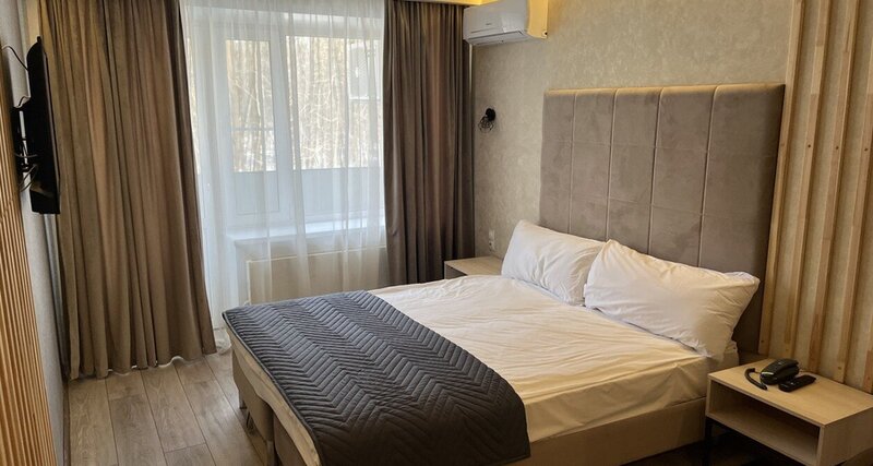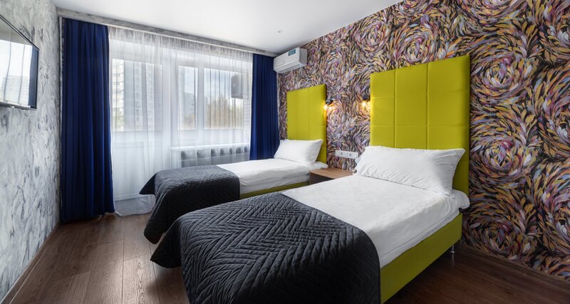 Комфортабельный просторный номер категории Полулюкс с двумя односпальными кроватями. Спокойное расположение с балконом и видом на парк, в стиле современного лофта в теплой цветовой гамме и располагает всем необходимым для комфортного пребывания!