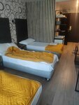 Гостиница хорошая, мебель свежая. В санузлах есть всё необходимое, чтобы привести себя в порядок после дороги. Постельное и полотенца не новые, но чистые. Комнаты просторные. Из минусов - обещали двухкомнатный номер тремя кроватями: одна большая и 2 односпальные, но почему-то сняли на него бронь и предложили другой вариант: с диваном двухместный, не очень удобно разнополым детям-подросткам, но не критично. А вот уборка оставляет желать лучшего: полы грязные, белые носки сразу стали серые, без тапок находиться нельзя, двери в санузлах в грязных пятнах и каплях, и даже мыльница в ванной была грязная. За это и минус большой. Внизу имеется столовая, но нам не понравилось.